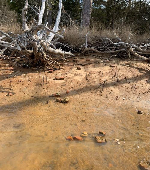 በመጨረሻ፣ በመጨረሻ ንብረቱን ለመጎብኘት ቻልኩ። ባለቤቱን አገኘሁትና መኪናዬን በመግቢያው በር ትቼ ተሽከርካሪውን ይዘን ሄድን። የድሮውን የከተማ ዳርቻውን ጎርባጣ የእርሻ መንገዶችን አቋርጦ፣ ጥልቅ ጭቃ በሞላባቸው ኩሬዎች እና በወረዱ ቅርንጫፎች ዙሪያ አሳለፈ። ከጥቂት ቀናት በፊት አውሎ ንፋስ መጥቶ ውዥንብር ጥሎ ነበር። በባሕሩ ዳርቻ ስላለው የጣቢያው ሁኔታ ተጨንቄ ነበር። ይጠፋ ነበር? ማዕበሎቹ እና ማዕበሎቹ የበለጠ ይገለጡ ነበር ወይንስ ይቀበራሉ? በባህር ዳርቻ ላይ ያሉ ቦታዎች ለአንድ ሳምንት ሊጋለጡ እና በሚቀጥለው የአሸዋ ክምችቶች ሊደበቁ እንደሚችሉ አስተውያለሁ። ሁሉም በተፈጥሮ ፍላጎት ላይ የተመሰረተ ነው. የንብረቱ ባለቤት በሚያስደንቅ ሁኔታ ወደ ጣቢያው አቅራቢያ ሊነዳን ችሏል። እስከዚህ ነጥብ ድረስ ስለ አካባቢው ያለኝ እይታ በ USGS ቶፖ ካርታዎች እና የሳተላይት ምስሎች ብቻ ነበር። እዚህ መሬት ላይ ጫማ ማግኘቴ አንዳንድ ጭንቀቶቼን ቀለሉ። የጣቢያው አቀማመጥ በጣም አጭር የእግር መንገድ ነው እና በአንጻራዊ ሁኔታ የተረጋጋ ይመስላል፣ቢያንስ መጀመሪያ።