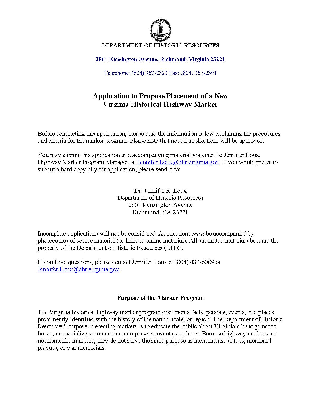የዚህ ቅጽ የማይክሮሶፍት ዎርድ ቅጂም ይገኛል። https://www.dhr.virginia.gov/wp-content/uploads/2026/02/Marker-Application-2026.docx