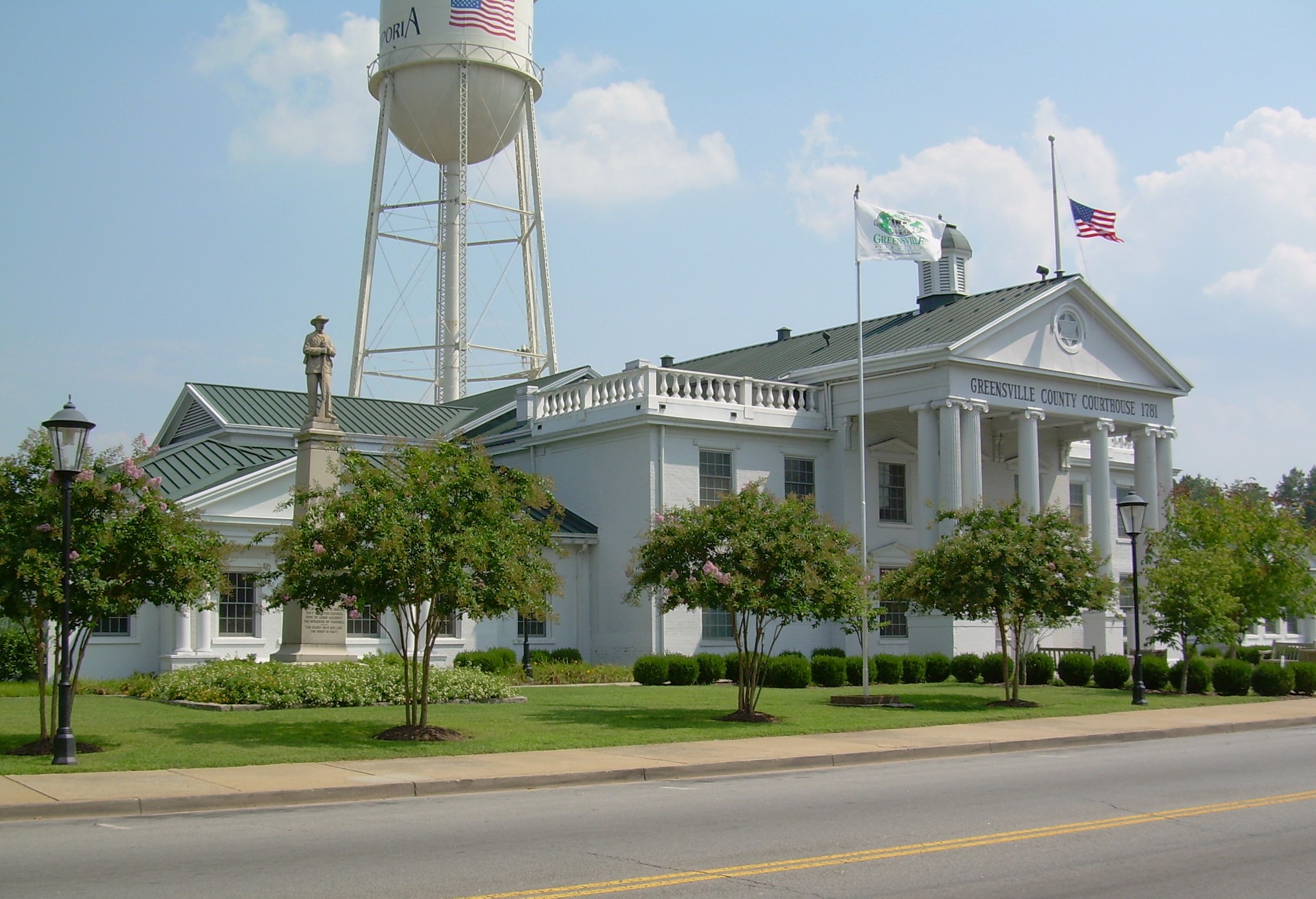 ከ 1787 ጀምሮ የካውንቲው የመንግስት መቀመጫ መገኛ ሆኖ የሚያገለግለው በEmporia ከተማ የሚገኘው የGreensville ካውንቲ ፍርድ ቤት ኮምፕሌክስ፣ በሂክስፎርድ ታሪካዊ ዲስትሪክት ውስጥ እንደ ማዕከል ሆኖ የሚያገለግል ሶስት የሕንፃ ሕንፃዎችን ይጠብቃል። በካሬው ውስጥ ያለው ዋናው አካል፣ ፍርድ ቤቱ፣ በ 1831 ውስጥ በዳንኤል ሊንች የተገነባው እንደ ሜዳ ባለ ሶስት ክፍል የፓላዲያን መዋቅር እና በ 20ኛው ክፍለ ዘመን መጀመሪያ ላይ በአዮኒክ ፖርቲኮ ያጌጠ ነበር። በጥሩ ሁኔታ የሰነድ ማስረጃ ያለው የጸሐፊ ጽሕፈት ቤት ከሮበን ሸሪፍ ዕቅዶች በኋላ በደቡብ እሳት መከላከያ ኩባንያ በ 1894 ተገንብቷል። የ 1900 Greensville ባንክ ህንጻ፣ አሁን የካውንቲው አስተዳዳሪ ፅህፈት ቤት፣ በሀገር ውስጥ የሚመረተውን የጌጣጌጥ ማህተም የታተመ የብረት ብረታ ብረት አስደናቂ የውስጥ ክፍል ይዟል። የኮንፌዴሬሽን ጄኔራል ዋድ ሃምፕተን በሜኸሪን በኩል ያለውን የባቡር ድልድይ ለመከላከል በወሰደበት ወቅት፣ የጄኔራል ሮበርት ኢ ሊ ከደቡብ አቅርቦት ምንጮች ጋር የሚያገናኘው የርስ በርስ ጦርነት ውስጥ ወታደራዊ እርምጃ የተወሰደበት አደባባይ ነበር።